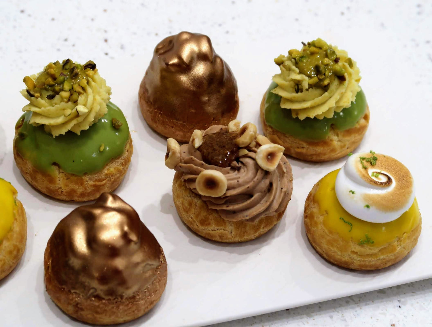 Unsere Brandteigbrötchen, leichte und köstliche kleine Häppchen, sind in mehreren Geschmacksrichtungen erhältlich, um alle Wünsche zu erfüllen. Perfekt für ein Buffet, eine Veranstaltung oder einfach zum Genießen, verleihen sie jeder Verkostung einen Hauch von Eleganz und Finesse.