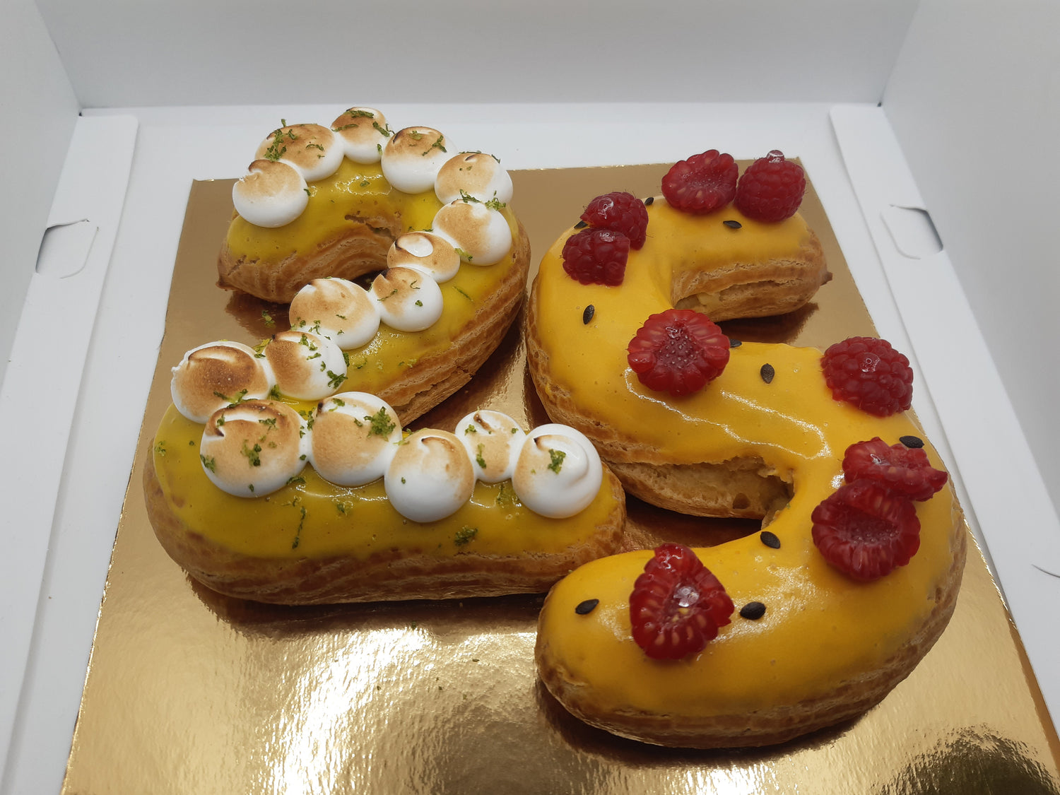 Der Number Éclair besteht aus köstlichen Eclairs, die so angeordnet sind, dass sie die Zahl oder den Buchstaben Ihrer Wahl bilden. Er ist in mehreren Geschmacksrichtungen erhältlich, um jeden Gaumen zu erfreuen. Ideal zum Feiern eines Geburtstags oder eines wichtigen Ereignisses, mit der einzigartigen Note von Donatien Maître Éclair!
